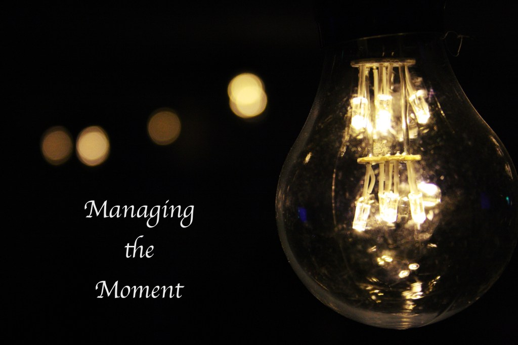 If I think of everything I must get accomplished in an entire week I get flustered. I get overwhelmed and then I get tunnel vision. I start working on tasks and do not allow myself to finish until they are all done, and I get frustrated if anything gets in my way. Managing the moment allows me to take each task as individual and work without as much stress.
