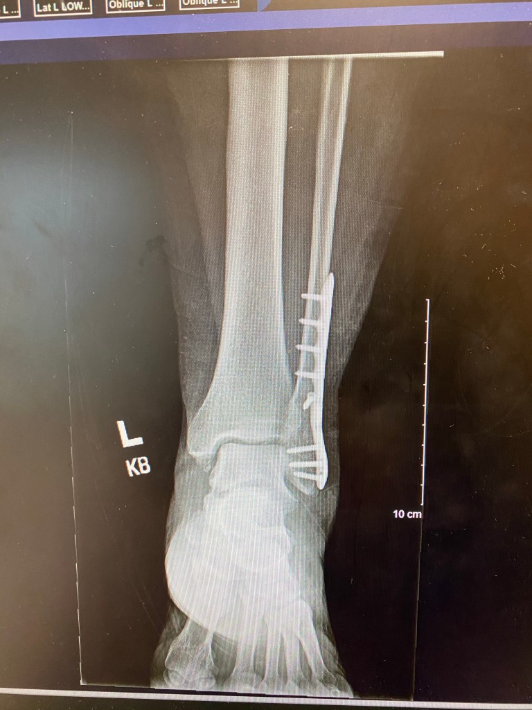 So that bring me to the current state of the ankle. I hobbled into my 6 week post op visit just one week ago with my boot and crutches. Anxiously awaiting the new X-ray results and the doctors game plan.
